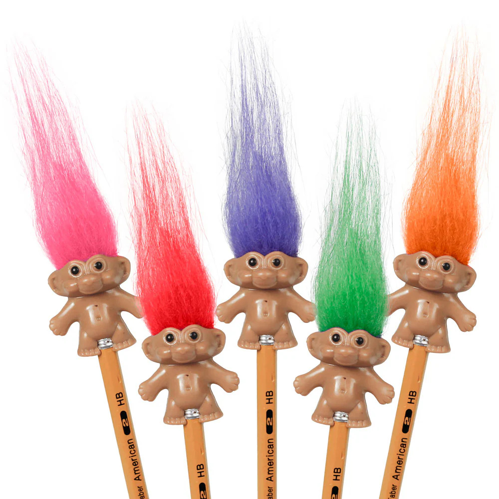 This week’s throwback comes to you courtesy of the series Shrinking where the pencils with trolls on the top made a recent appearance in two episodes. I had a few of these and very much enjoyed twisting and braiding the colored hair, along with tickling the bottom of my chin while procrastinating doing homework. You?