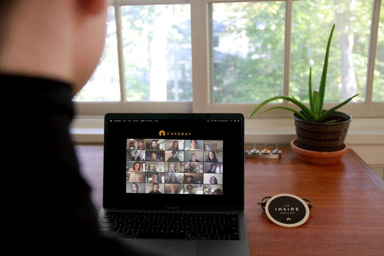 If you’ve heard me talk about “the Cave” before, apologies cause things about to get dark up in here, and by dark I actually mean bright because, in fact, “Caveday” has become a light as far as my focus and productivity levels go. It’s hard to explain it properly in a non-clunky way, but here goes: Caveday is an online co-working session in which members work independently on Zoom—with their cameras on—for about 50-55 minutes. The goal? Accountability and purpose. Or, as Caveday likes to say: “Caveday is like a group fitness class … but for your work. A trained guide leads deep work sprints and energizing breaks.” You see faces from all over the world in various time zones — be it Bombay or Bangkok, Paris or Pittsburgh. Everyone is pursuing a different project, from writing books and weekly planning to web dev, apps, and graphic design.